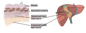 The subserosal layer of the gallbladder wall is composed of two distinct layers: