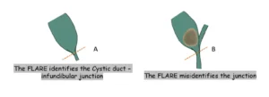 a. In the infundibular approach, surgeons rely on a characteristic “flare” or funnel-shaped appearance to identify the junction between the cystic duct and the gallbladder.