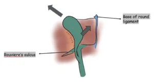 Rouviere’s Sulcus, present in over 75% of patients, is an important anatomical landmark for guiding posterior dissection of the hepatocystic triangle. It contains the right posterior portal pedicle and indicates the level of the hilar plate, helping surgeons avoid dissection that strays too low and reducing the risk of bile duct injury.
